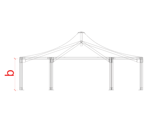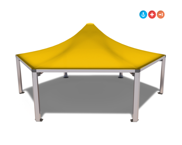 Structure of this model has an apex ring supported by six diagonal beams under the cover on a hexagonal plan. It is covered by PVC fabric which is heat, wind and rain resistant and blocks UV rays. Supporting structural system is coated by lead free paint.