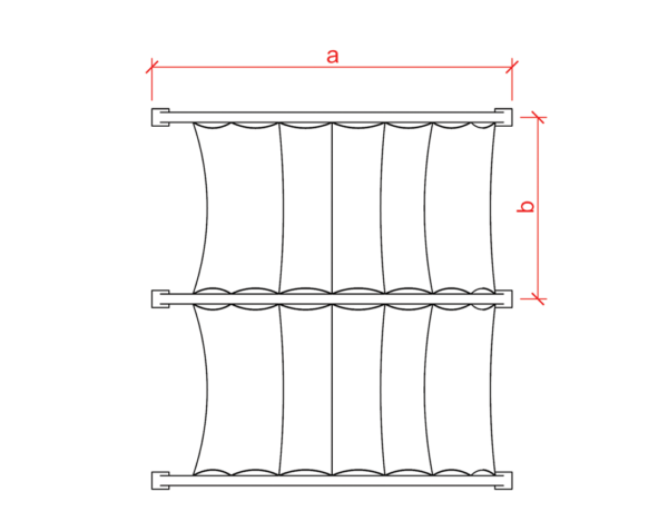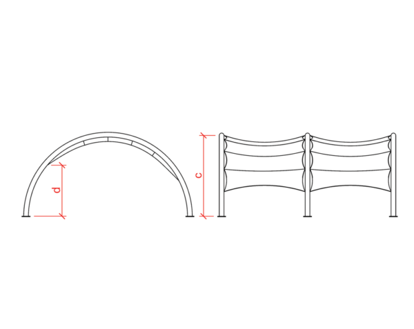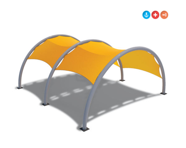 The model consists of arches on a rectangular base plan. It is covered by PVC fabric which blocks UV rays and is resistant to heat, wind and rain. Supporting structural system is coated by lead free paint.
